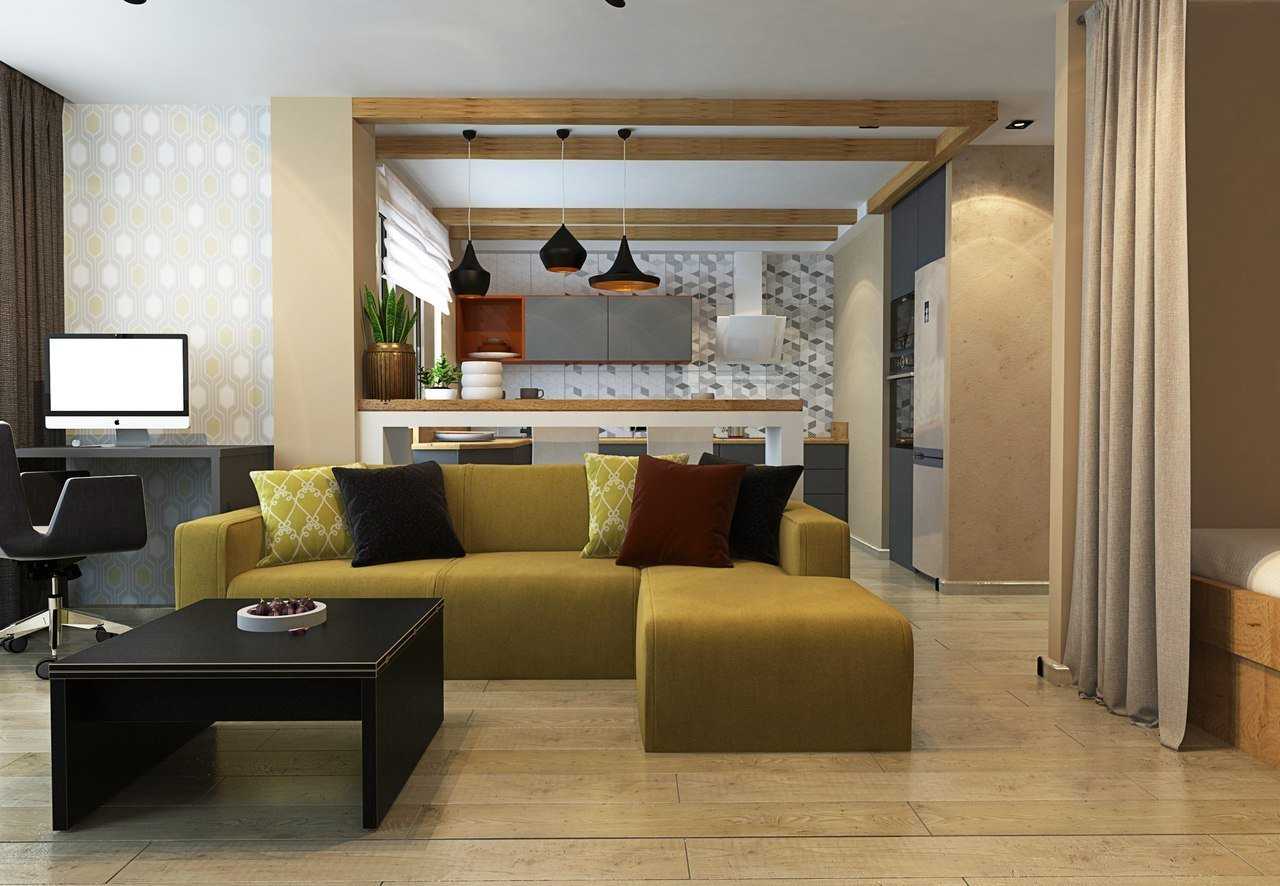 Как же может выглядеть дизайн студии 30 квадратов с такой внутренней планировкой? Рассмотрим вариант без явного деления комнаты на две – изолировать спальню от кухни-гостиной можно всегда, а вот убрать гипсокартонную перегородку без порчи ремонта будет невозможно.