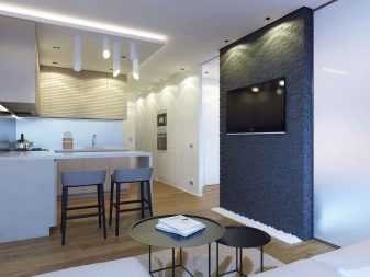- В качестве перегородки использовать шкаф, барную стойку или стеллаж, нишу.