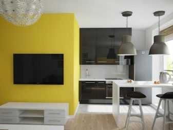 Важно: речь идет опять же о насыщенных, а не о блеклых оттенках, иначе студия будет выглядеть невыразительно. Оптимально с дизайнерской точки зрения желто-белое либо желто-зеленое сочетание
