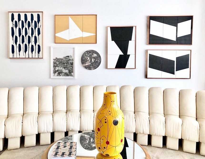 - использовании геометрических принтов в оформлении мебели, стеновых поверхностей и текстильных изделиях;