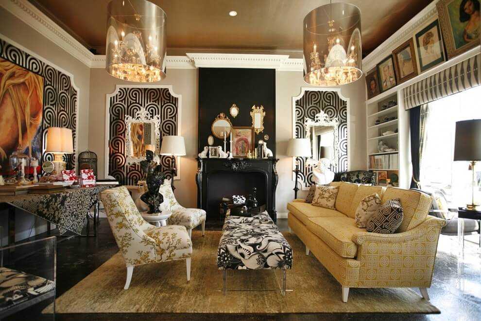 - В дизайне присутствуют и этнические мотивы, аксессуары, они появились благодаря путешествиям на Восток. В интерьерах того периода часто можно было встретить марокканские ковры, занавески, гобелены.