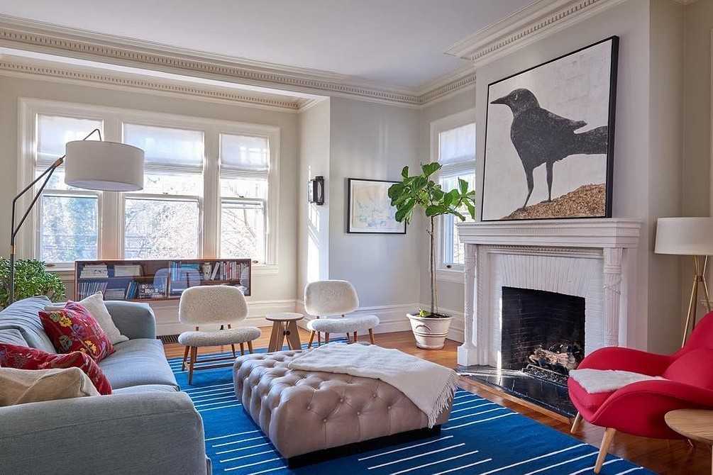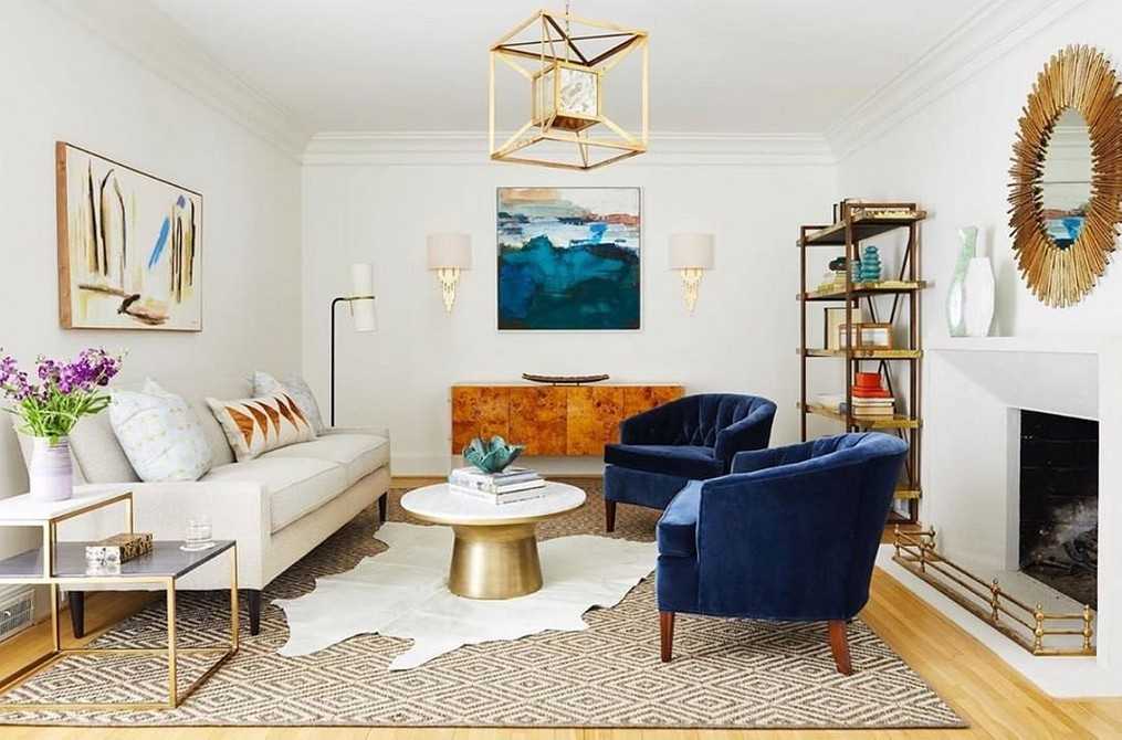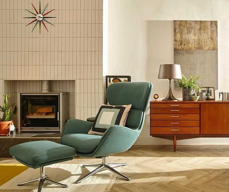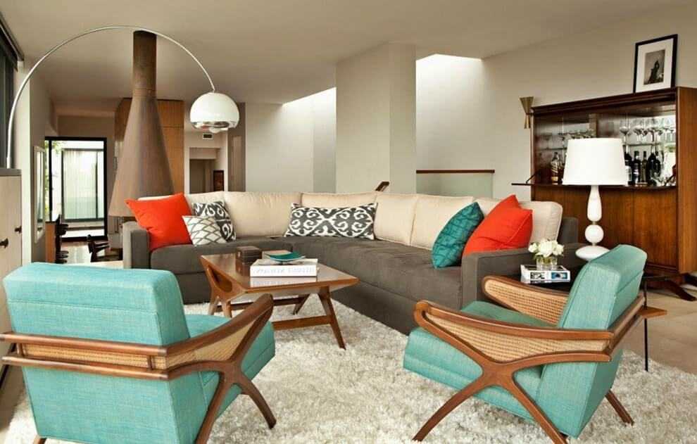 Интерьер в стиле ретро для гостиной комнаты с однотонной мебелью Источник designer-info.ru