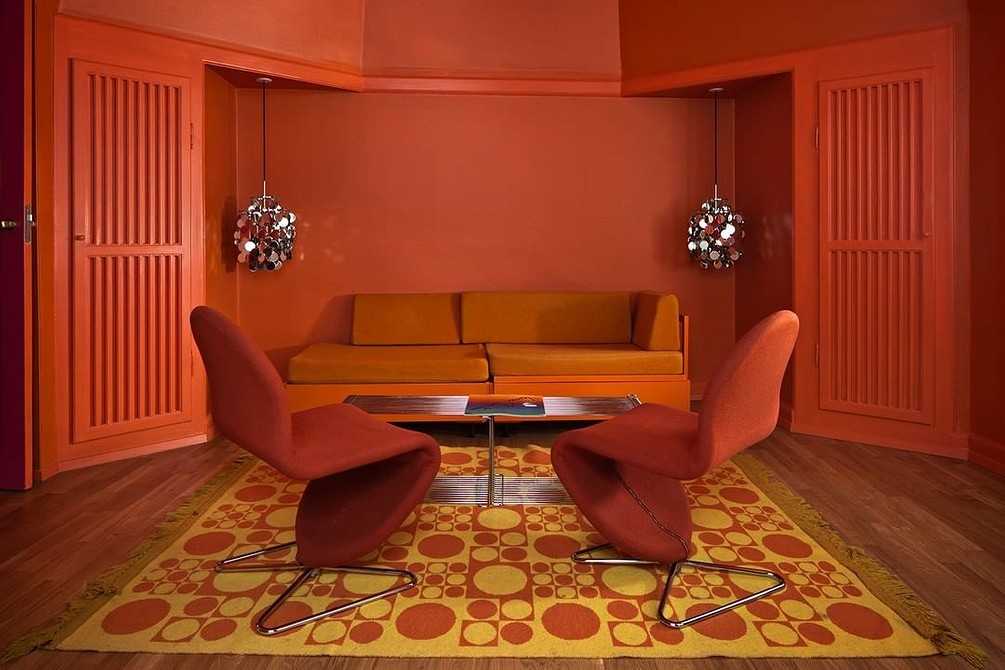 И, хотя многие предпочитают более нейтральные (горчичный, оливковый) или насыщенные (пурпурный) цвета, всегда можно дополнить картинку интерьера актуальными в 50-70 года паласами или мягкими коврами.