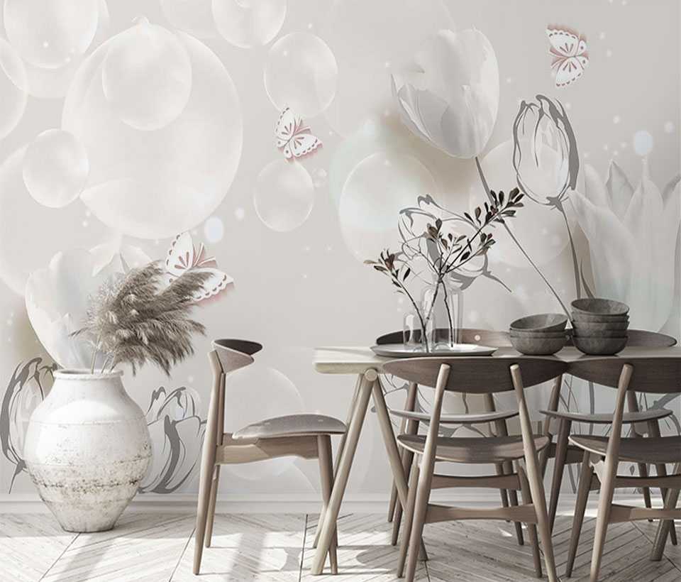 Изображения тюльпанов хорошо сочетаются со стилями прованс, шебби-шик и даже хай-тек. Они подходят для светлых помещений с ограниченным набором мебели.