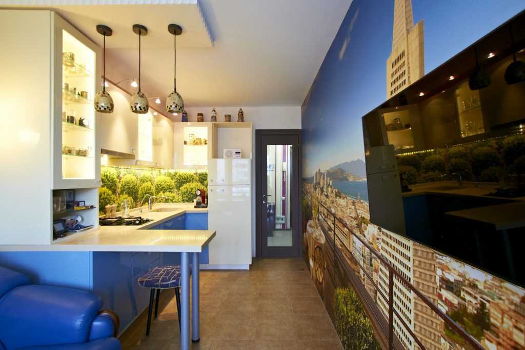 Совет! Дизайнеры не советуют клеить фотообои на самую узкую стену на кухне, чтобы не получился эффект продолговатого «пенала». Такой вариант оформления лишит помещение уюта, сделает его интерьер нелепым и странным.