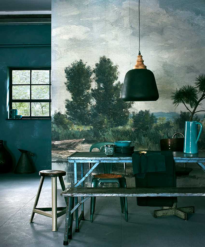 Живописные фотообои отлично впишутся в интерьер кухни в стиле кантри или прованс