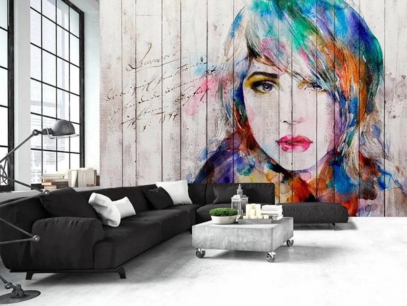 Оформление стены в стиле лофт яркой абстракциейИсточник joor.me