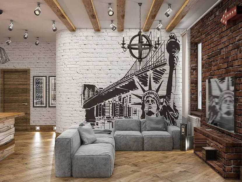 Оформление кирпичной стены картиной в стиле лофтИсточник behance.net
