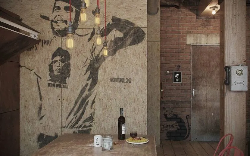 Это индивидуальный формат изображений, который неплохо подчеркивает состаренный внешний вид лофта и его небрежность. В качестве графических изображений идеально подойдут такие мотивы: