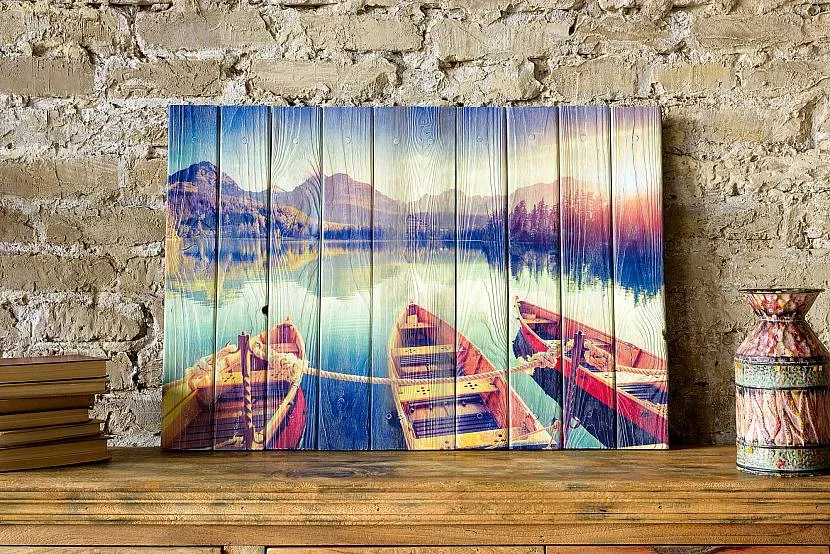 Картины, изготовленные на основе дерева представляют собой технику декупажа. Для этой цели стараются использовать следующие методики: выжигание, рисование, стринг-арт, УФ-печать. Также эффектные изображения получаются на фоне сбитых дощечек от ящичков или деревянных торговых паллетов. Такие конструкции даже ценятся больше.