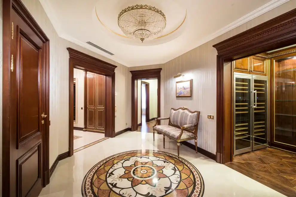 Трапециевидные и прямоугольные – это проемы, которые смогут поддержать классические тенденции, наметившиеся в убранстве прихожей, часто облицованные панелями из различных материалов.