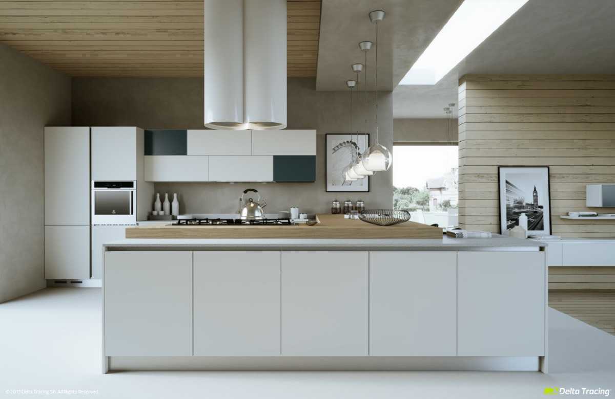 Полностью белая мебель или стены, окрашенные в светлые тона, контрастирующие с полами и потолком, украшенные несколькими красочными акцентами (красные фасады шкафов, ярко-зеленый текстиль, серебряный подвесной светильник, лимонно-желтое осветительное оборудование), продемонстрируют ваш изысканный вкус и нестандартное мышление.