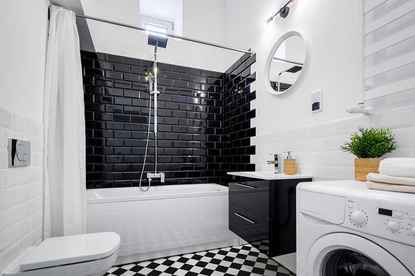 Начнем с отличной новости: контрастное оформление санузла уместно во всех стилях. Рустик, современный и даже классический — в любом направлении легко реализовать такую гамму. Весь смысл — в подборе пропорций цвета. И это самое сложное. Ведь сочетание 50 на 50 часто выглядит неактуально, особенно в том случае, если вы оперируете двумя очень контрастными цветами. Гораздо гармоничнее выглядят интерьеры, в которых 60% приходится на основной цвет — в нашем случае это черный или белый, 30% — на дополнительный и 10% — на детали и акценты. Задача — определить, какой тон будет основным и базовым, а какой — дополнительным.