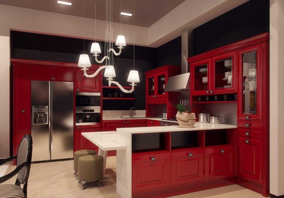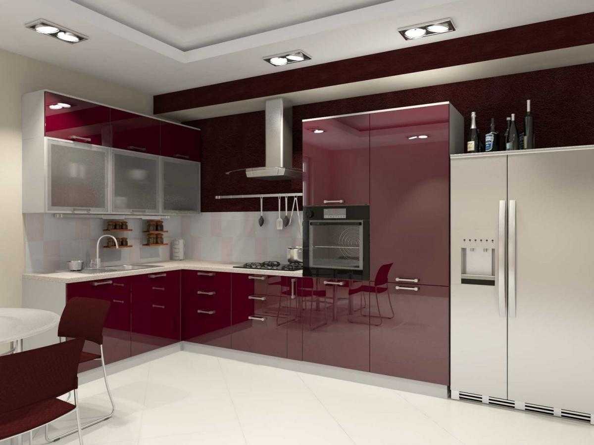 Дизайн стен, потолка, пола на кухне в бордовых цветах