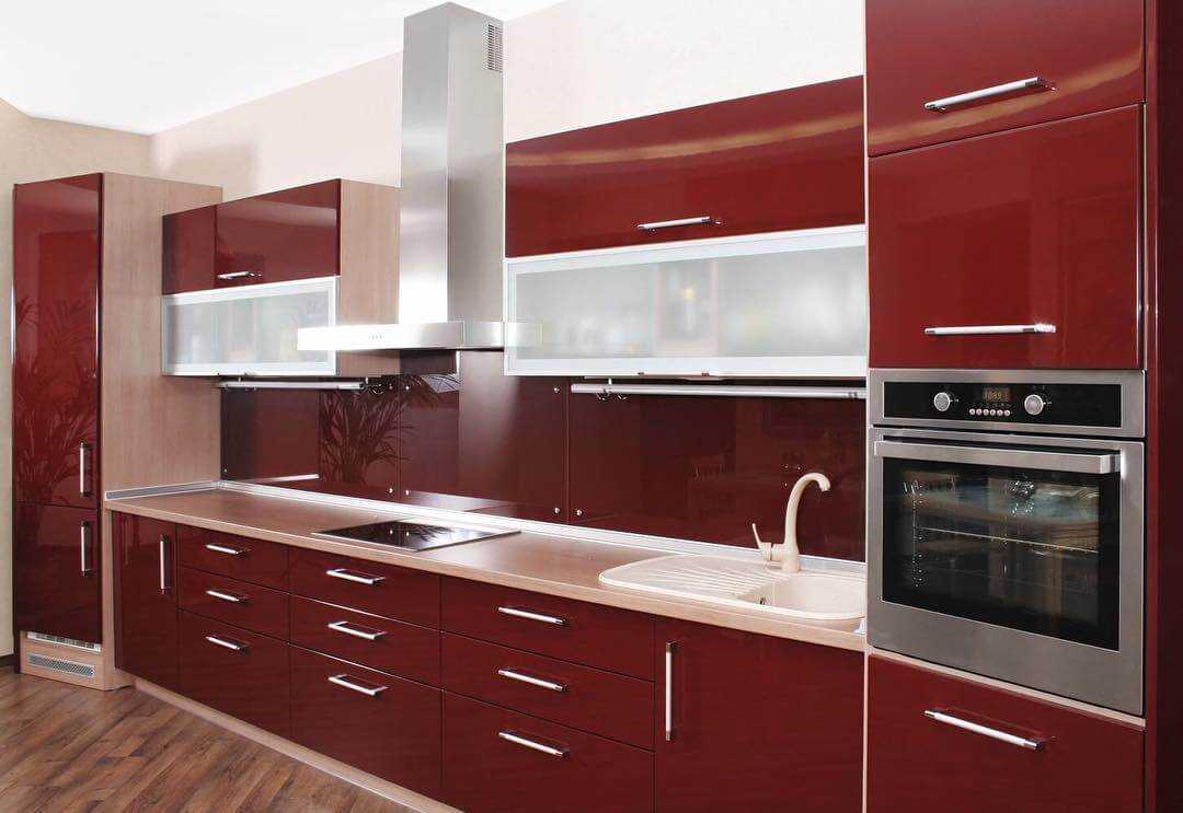 Обладатели просторных кухонь могут взять в качестве основного тона бордовый цвет. Его оттенки немного уменьшат помещение визуально, но придадут ему элегантности и добротности.