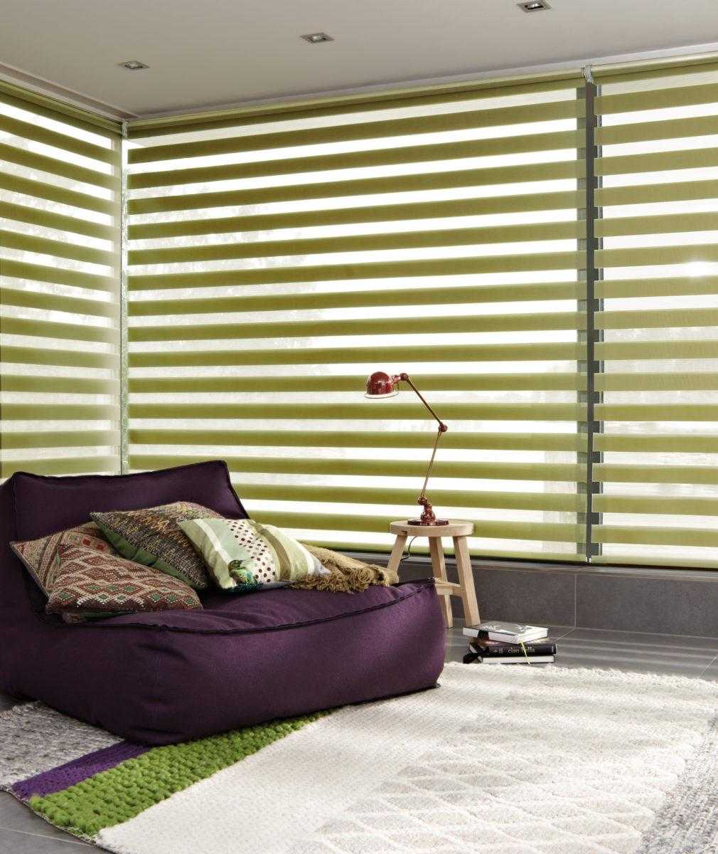Шторы и иные текстильные элементы должны быть грамотно подобраны по цвету. Драпировки, рюши и иной пышный классический декор в данном случае будут совершенно неуместны, а вот жалюзи (однотонные или с узором в полоску) хорошо дополнят интерьер.