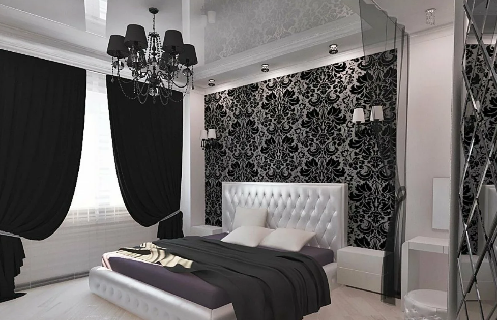 Белый и черный также подойдут для минималистичной, элегантной и приглушенной спальни