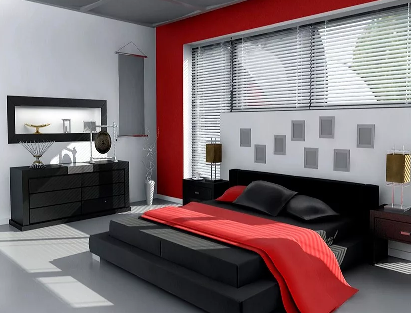 В какой комнате лучше всего организовать бело-красно-черный дизайн?