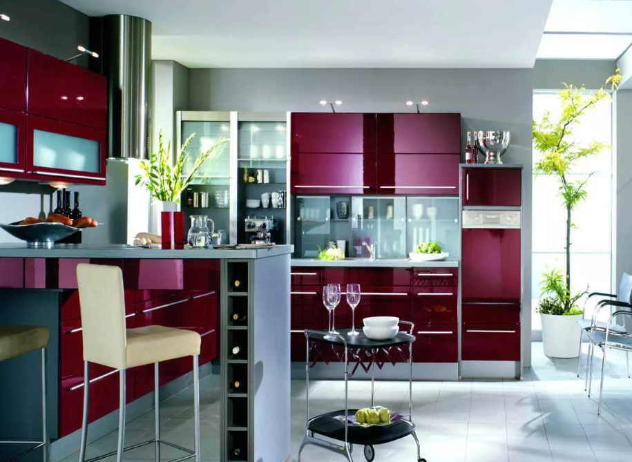 Красная кухня подходит активным, жизнерадостным людям, важно использовать цвет умеренно, чтобы не вызвать агрессии. Настраивает на позитив, улучшает настроение, поднимает аппетит