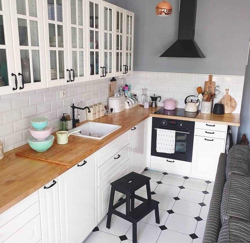 Существует большое разнообразие цветовых решений и оформлений кухонных гарнитуров от классики до современного модерна. Здесь, как говорится «на вкус и цвет, но в любом случае деревянная столешница должна вносить легкий контраст в общее оформление навесных и напольных шкафчиков. Будет здорово, если она будет выступать границей между верхней и нижней частью.