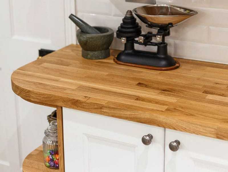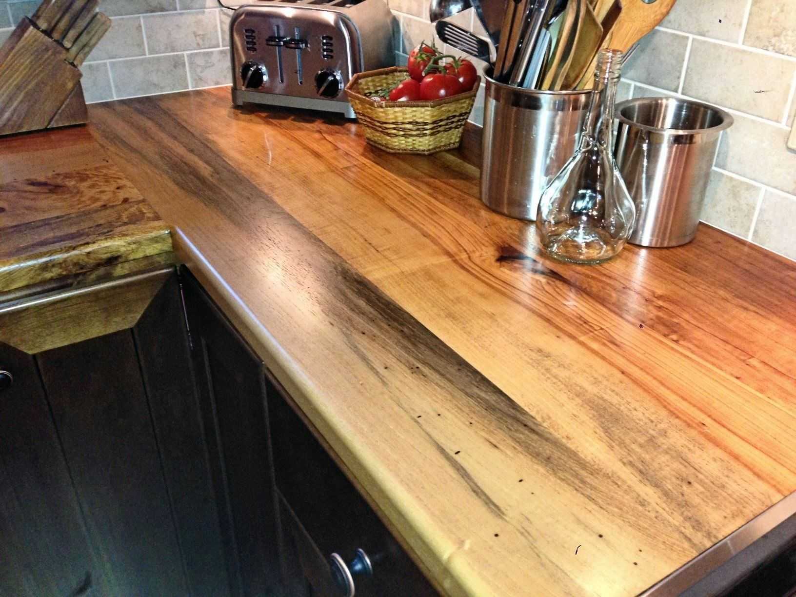 - Лучше всего подбирать столешницу, произведенную из 100% пород дерева.