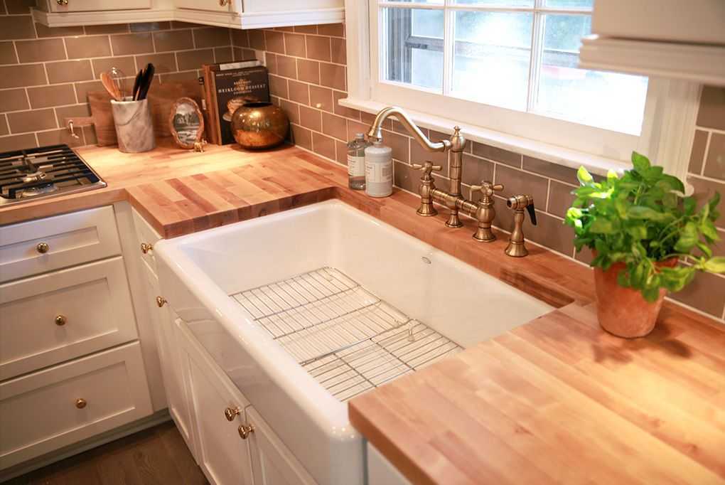 Сочетание деревянной столешницы с разными стилями интерьера кухни