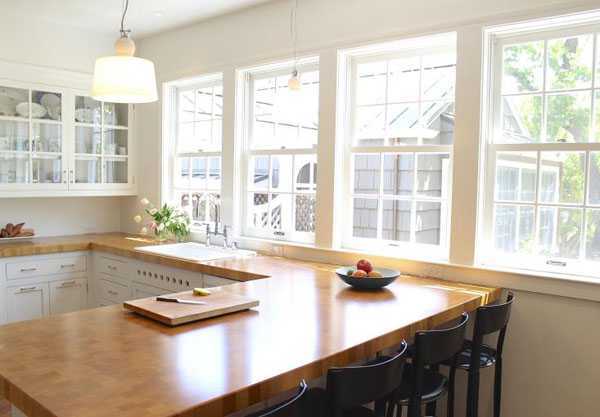 Столешницы из дерева удачно интегрируются в различные стилевые направления – от классики до модерна. Они прекрасно сочетаются с деревянной отделкой стен. Главное – правильно подобрать оттенок древесины.