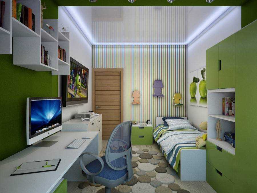 Комната подростка это уже территория проявления своих вкусов и желаний. Здесь должен появиться уголок, где ребенок сможет собираться со своими друзьями, место для размещения компьютера.