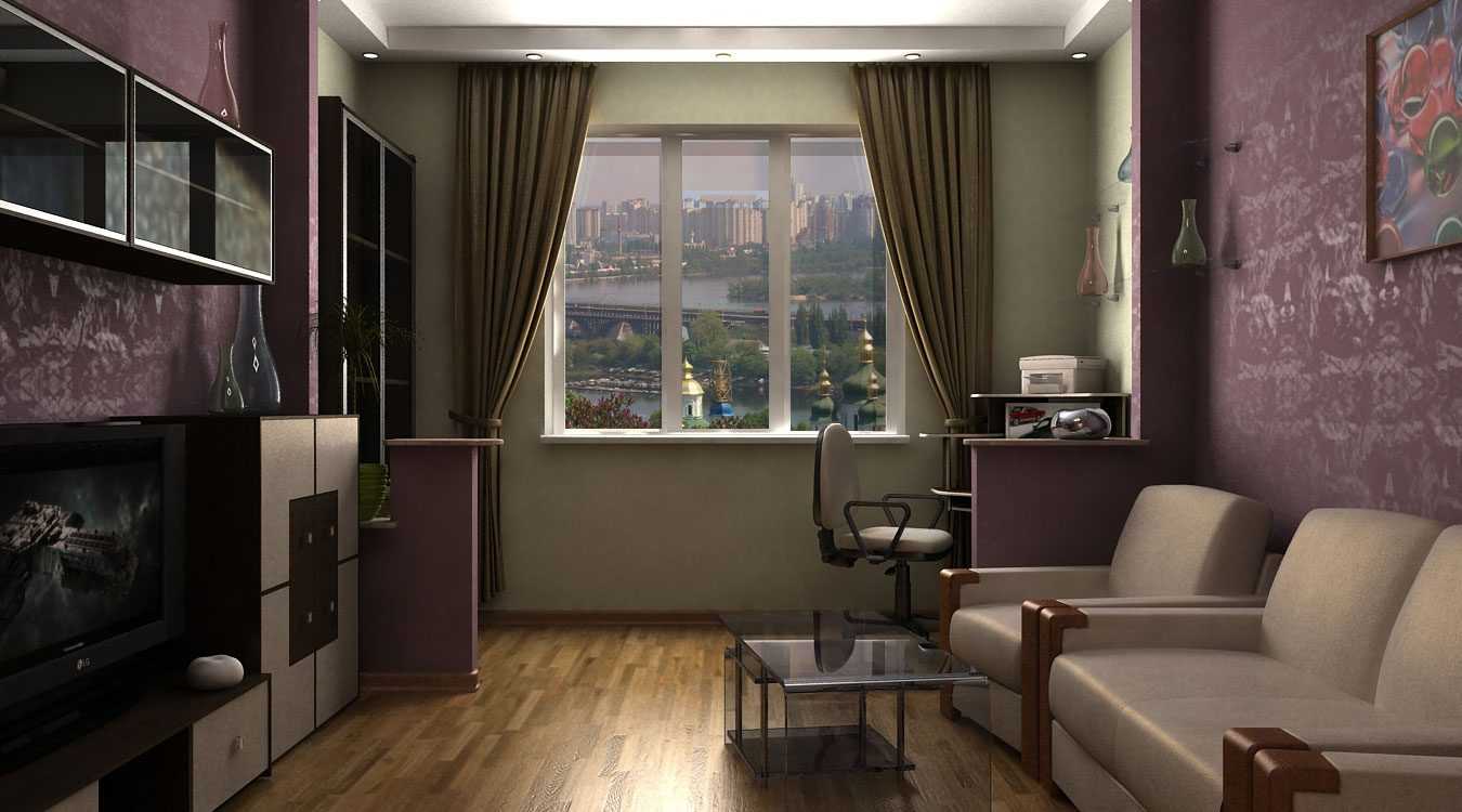 В гостиной с балконом возникает она трудность – дверной проем ограничивает пространство для размещения мебели и особенно для углового дивана. Поэтому здесь можно поставить или повесить на стену телевизор, обустроить уголок для отдыха, игровую (с обеспечением безопасности для малыша). В бюджетном зале подоконник можно продлить столом и организовать место для учебы школьников или студентов.