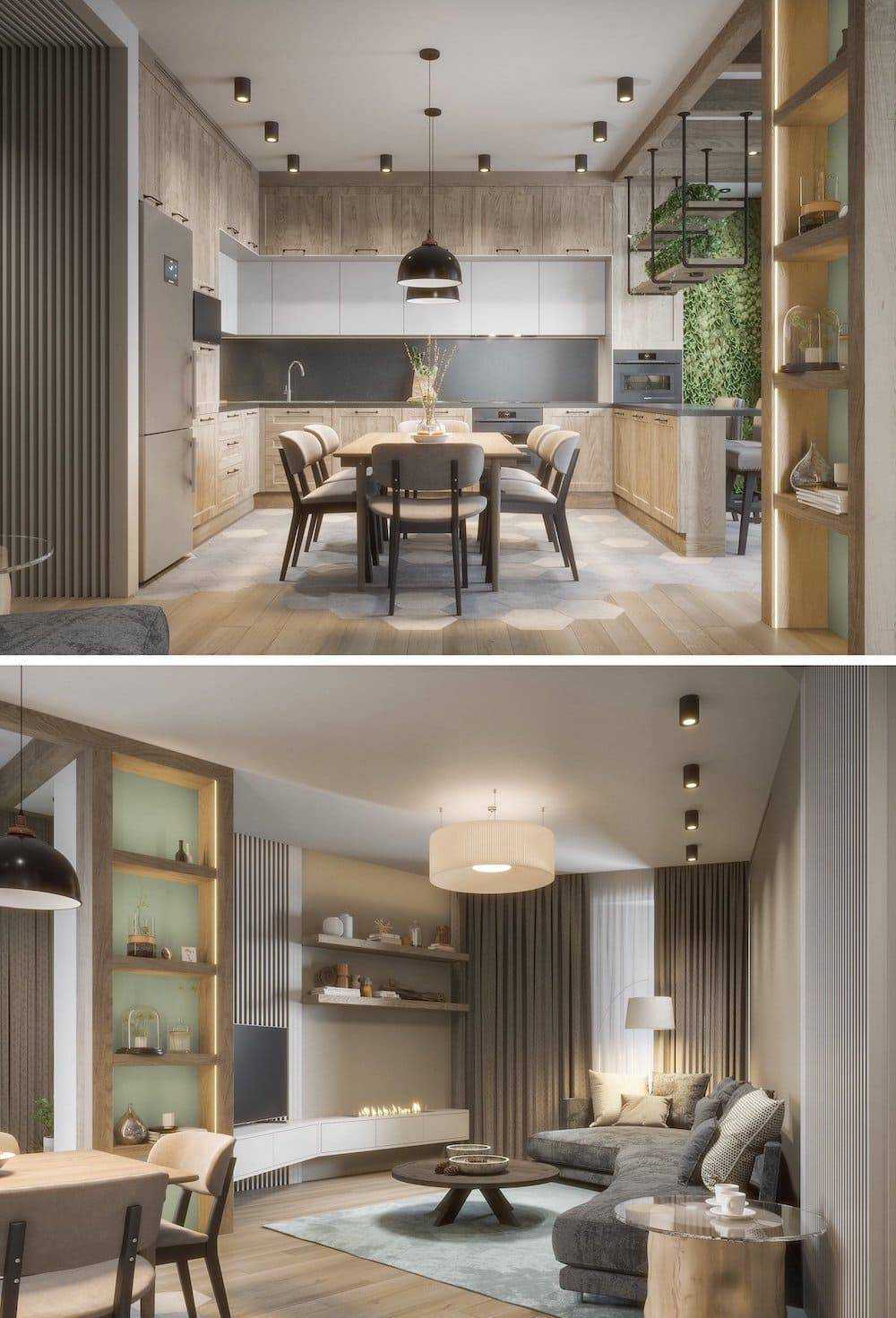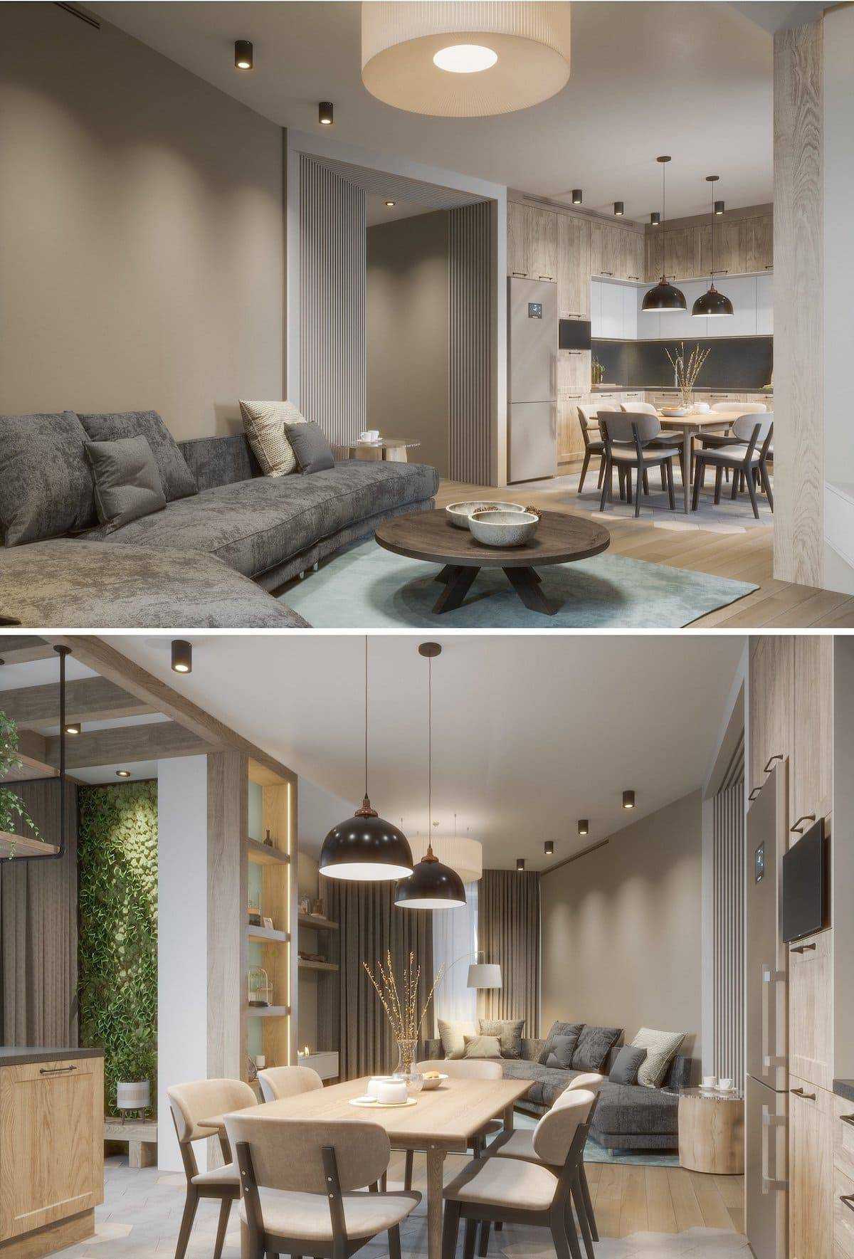 Бежевый интерьер выглядит теплее и уютнее, потому что этот цвет сам по себе ассоциируется с домом. Он хорошо сочетается с натуральными материалами и фактурами 2021 года.