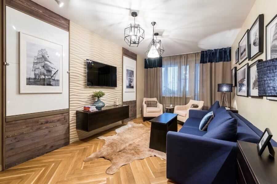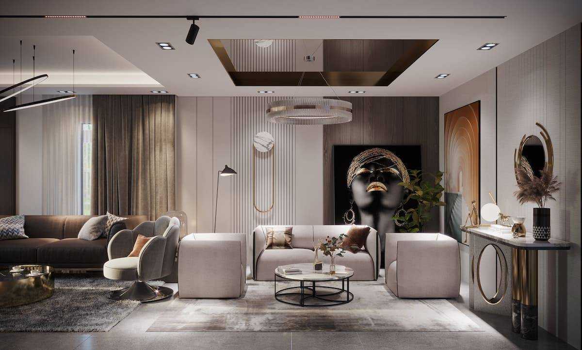В 2021 в интерьере преимущественно используются натуральные светлые цвета – бежевые, песочные, пудровые, мраморные. Ярких и насыщенных красками гостиных становится все меньше, а для настроения используются красочные аксессуары.