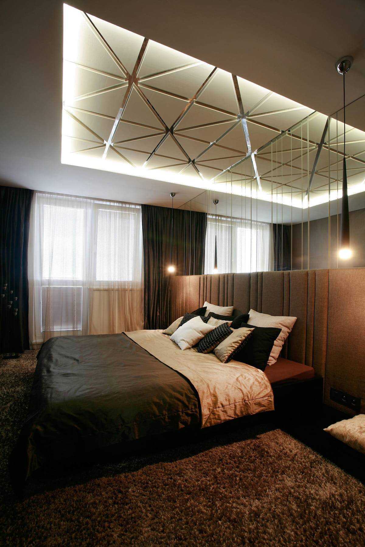 Зеркальный эффект. Чтобы получить оригинальный декоративный антураж, элемент не нужно делать весь потолок зеркальным. Достаточно уложить отражающие серебристые элементы на какой-либо небольшой участок потолочной плоскости.