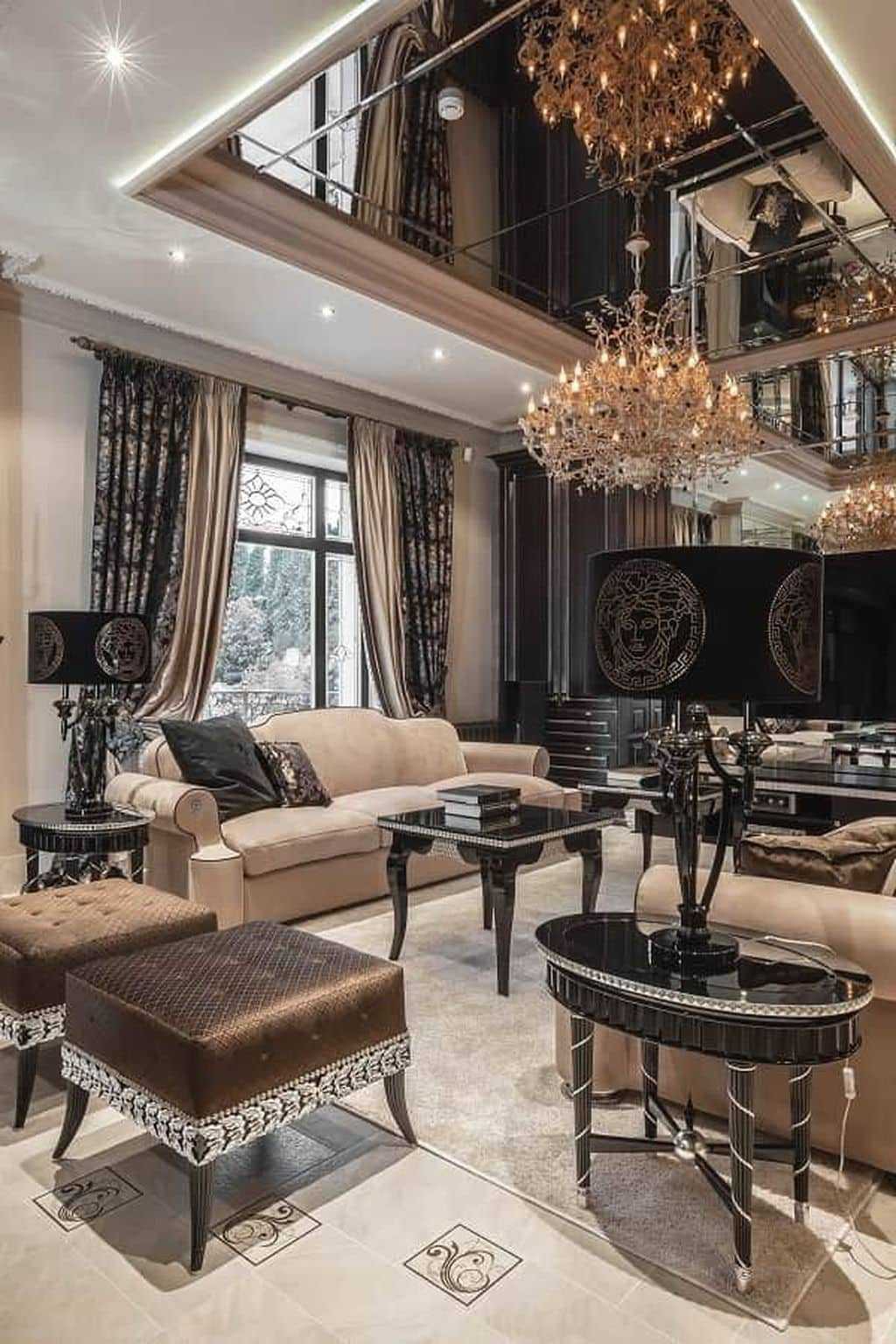 Шикарно смотрится потолок из гипсокартона с лепниной, такой вариант отлично подходит для классических интерьеров