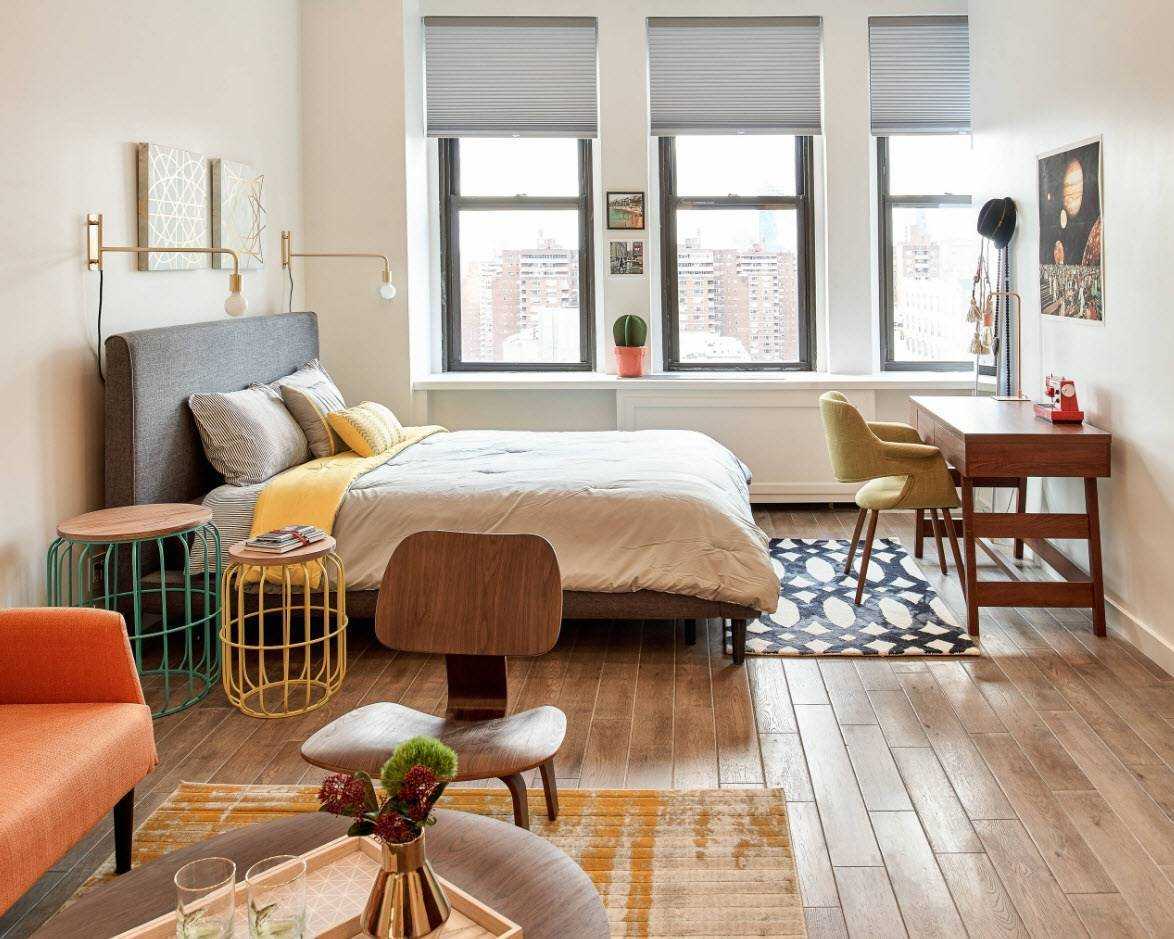 В совмещенной комнате все равно будет немало других предметов, которые и без того привлекут к себе внимание. Отказаться от громоздкой мебели. Единственное исключение здесь – кровать