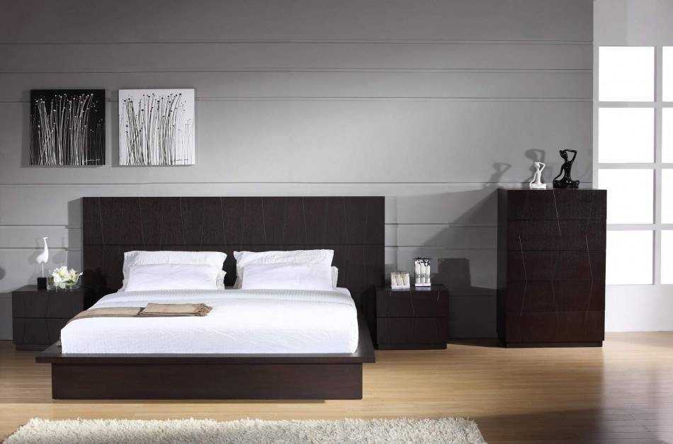 Кровать необходимо выбирать, основываясь на личный вкус. Она должна быть прочной, большой и удобной. Разместить ее можно в центре спальни или у одной из стен. Прикроватные тумбочки можно выбрать небольшие, а вот шкаф должен быть вместительным и функциональным.