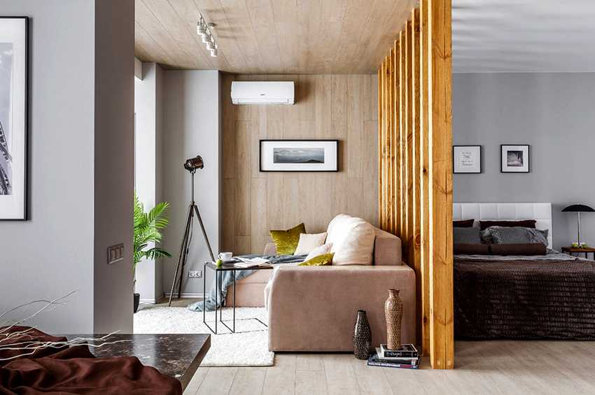 В современном интерьерном дизайне есть множество хитростей для работы с пространством. Даже гостиную, объединенную со спальней, можно разграничить так, что банальные стены покажутся скучными и невзрачными.
