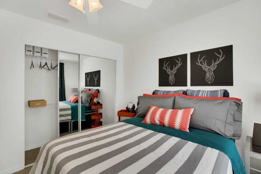Зеркала способны хорошо увеличить пространство, сделав его визуально шире и объемнее. Если ваша спальня маленькая, проблем с заполнением пустоты быть не должно: купите несколько зеркал и разместите их в комнате, стоит отдавать предпочтение круглым зеркалам.