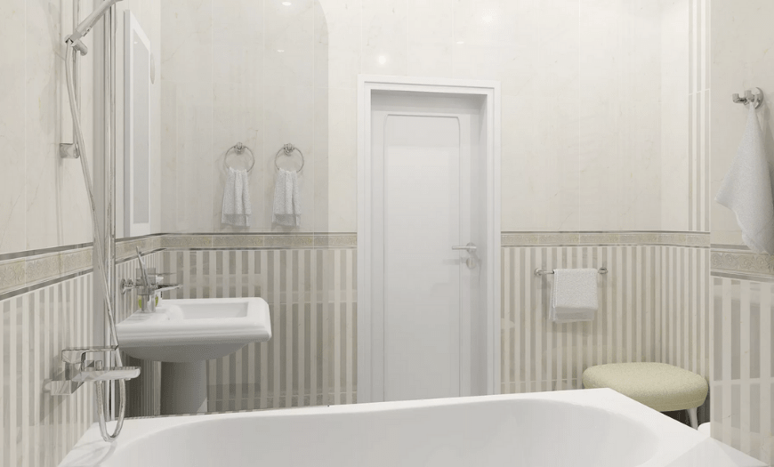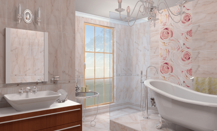 Если вы хотите создать в ванной комнате свежую атмосферу используйте при декорировании стен плитку светлых оттенков.