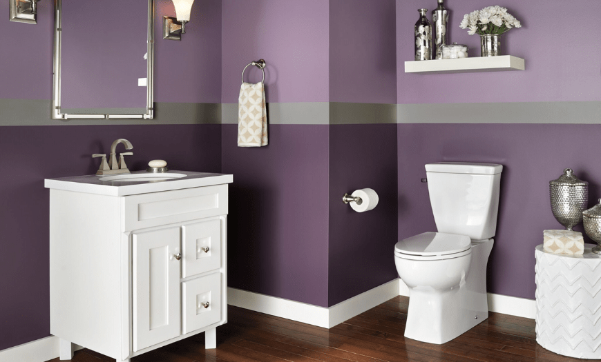 Не бойтесь выбирать темно-синие, фиолетовые и даже черные цвета. Их можно сочетать со светлой сантехникой и мебелью. Такой дизайн ванны и туалета будет невероятно стильным и элегантным.