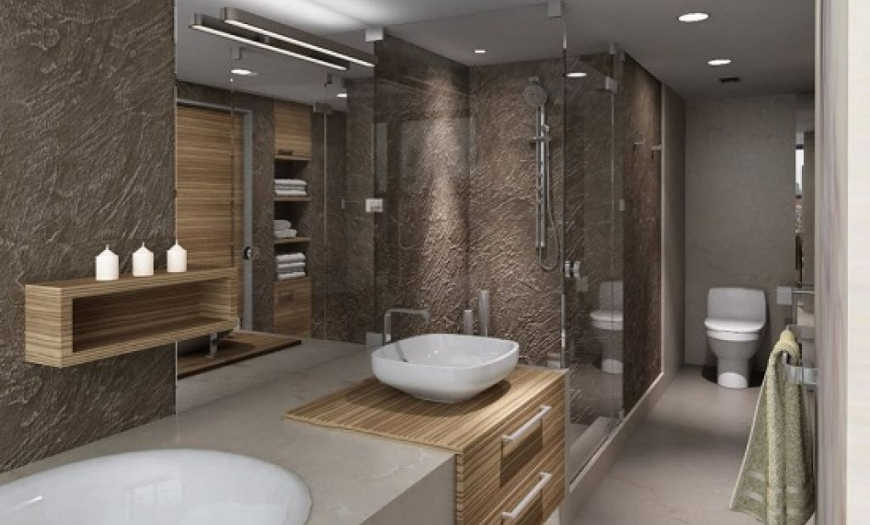 Если площадь позволяет, можно использовать перегородки из полупрозрачного стекла или гипсокартона. Так вы условно поделите санузел на зоны, сделав его использование более комфортным. Вполне возможно своими усилиями создать интерьер ванной комнаты в современном стиле эконом класса. Фото, которые вы можете увидеть на специализированных сайтах, ярко это демонстрируют.