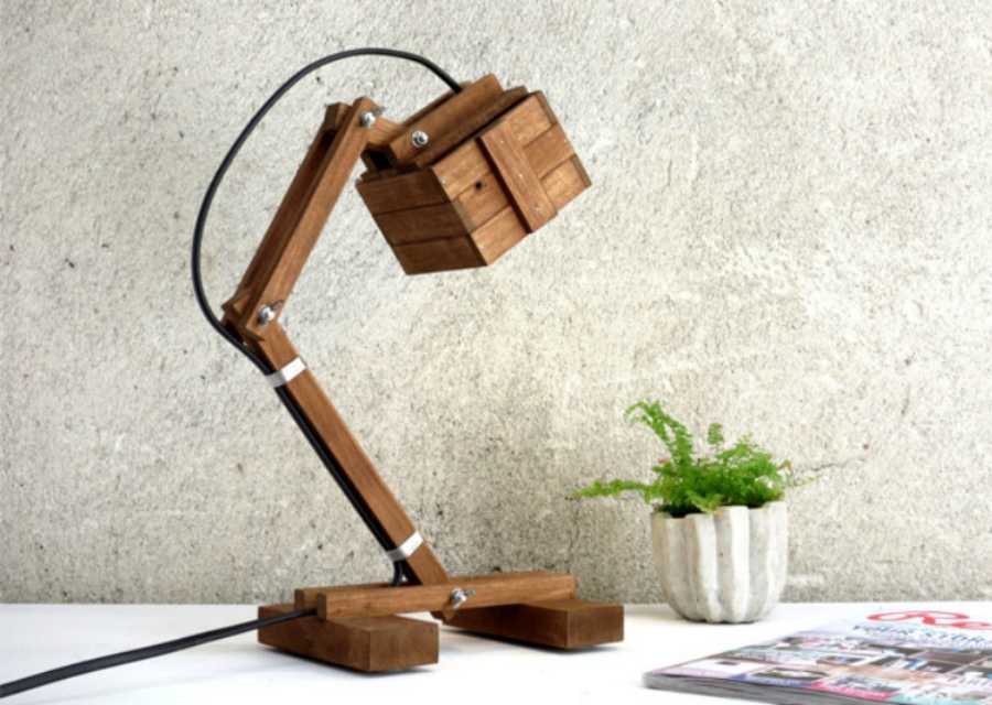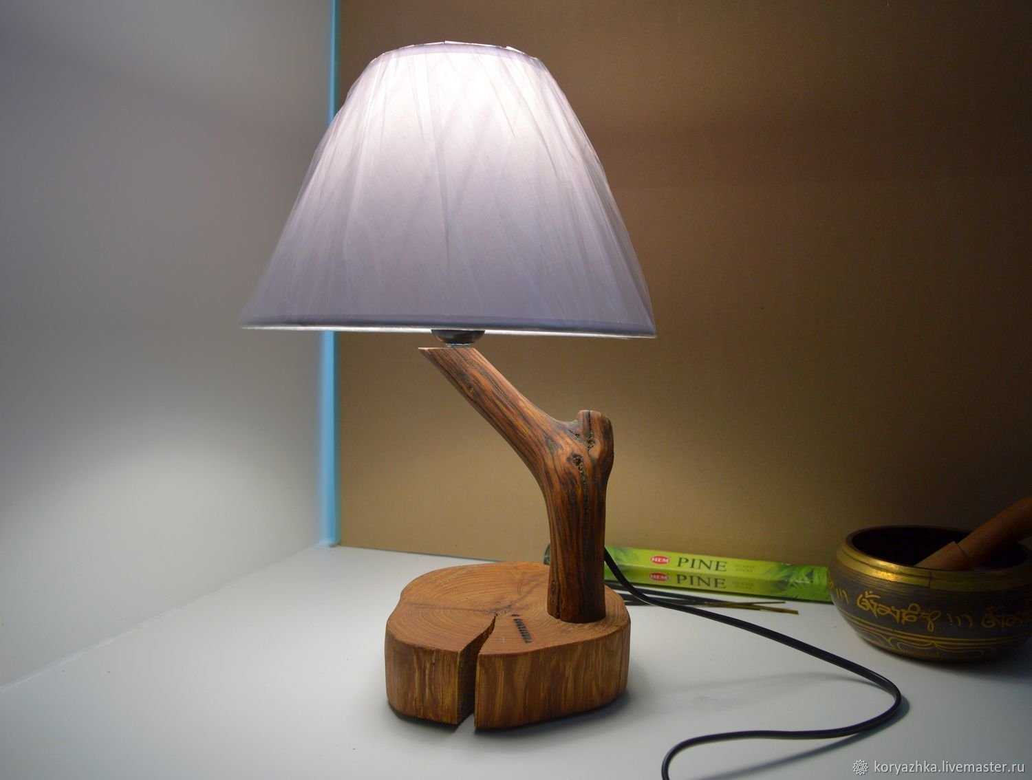 - Дерево. Нетрадиционный для плафонов материал идеально впишется в интерьер с эко стилем или этническим направлением дизайна. Чаще всего такие настольные лампы являются результатом ручной работы и выполнены в единственном экземпляре, поэтому стоимость будет соответствующая.