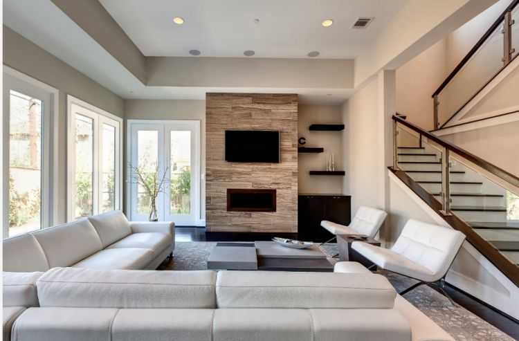 В гостиной человек выполняет разные задачи, требующие разной подсветки. Поэтому использование выключателей диммеров для регулировки яркости — лучшее решение. Теплый – более подходящий вариант для гостиной.