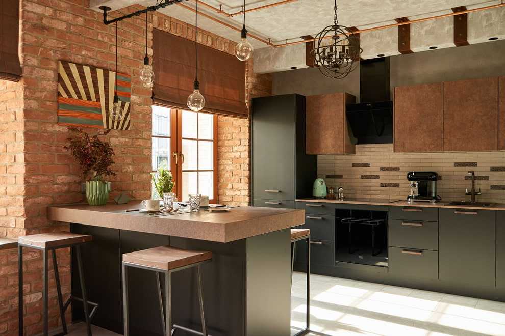 Могут быть использованы любые дополнительные элементы, но нельзя забывать о главной детали, образующей стиль – кирпичной стене. При этом, в небольшом помещении не рекомендуется открывать кладку по всей площади внутренних стен. Они будут слишком «давить», создадут ощущение тесноты, отсутствия свободного пространства.