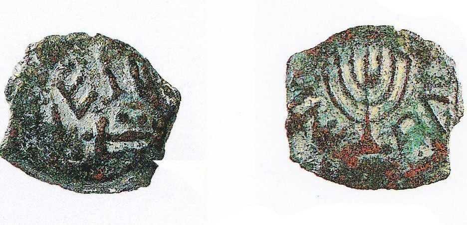 Менора на монетах царя Маттатии Антигоноса. Бронза. 37-40 до н.э. Музей Израиля, Иерусалим