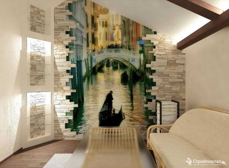 - можно использовать рисунки с оптическими иллюзиями, визульно расширяющими пространство.