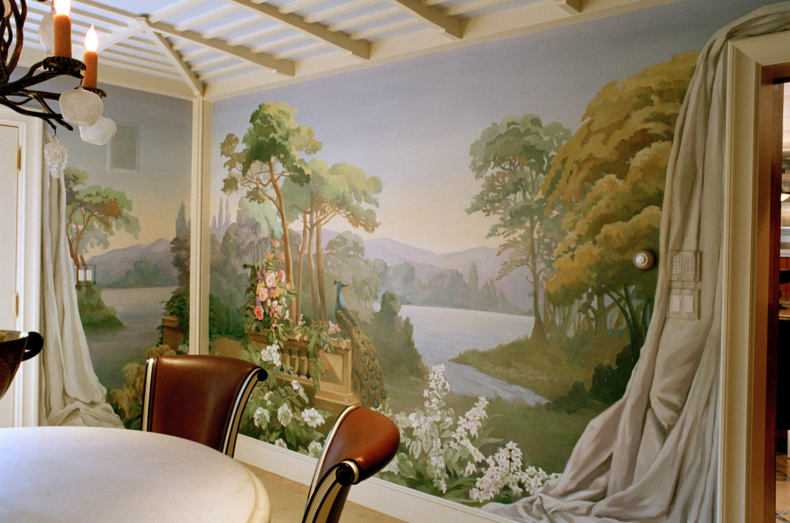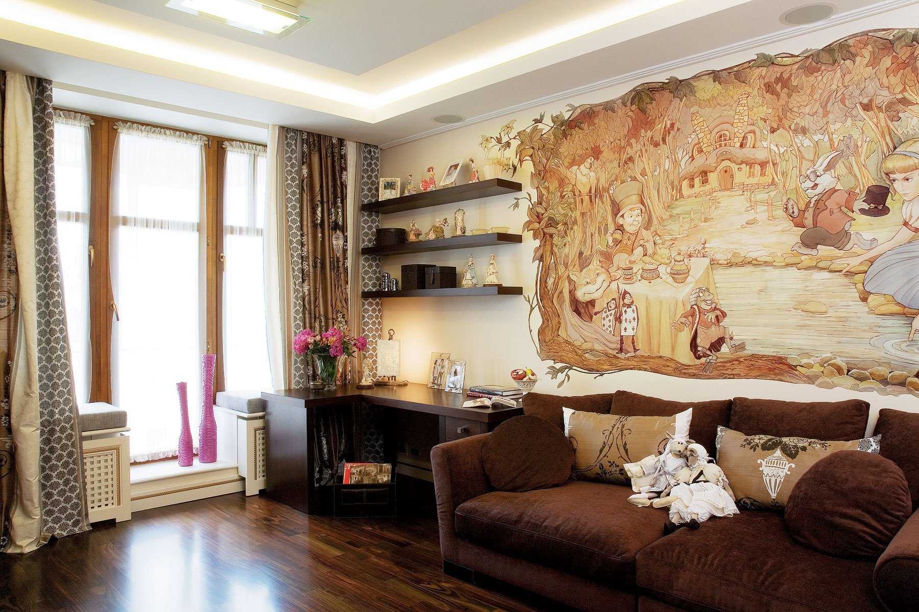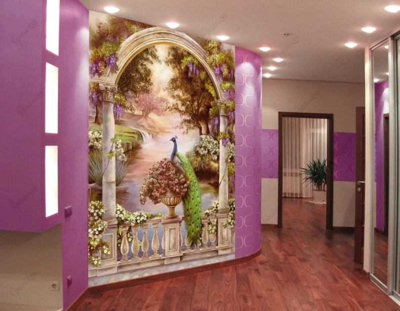 Первый вариант фрески для декора — это стены. На них фреску располагают, как на части стенки, так и покрывая ее полностью. Можно даже оформить все стены комнаты.