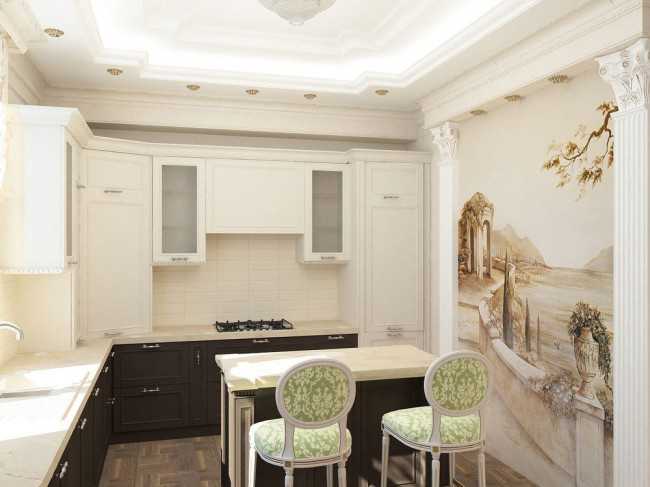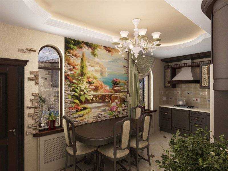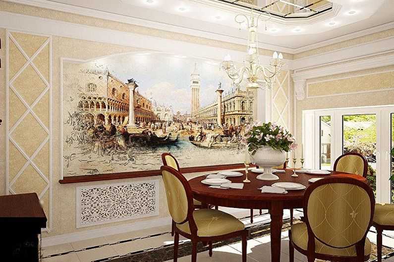Фреска на кухне в интерьере — один из способов разнообразить оформление и внести элемент эклектичности. Смешение стилей сегодня является одним из актуальных направлений в дизайне, а роспись стен теперь может гармонично вписаться не только в классическое помещение, но и кухню в стиле хай-тек или модерн.