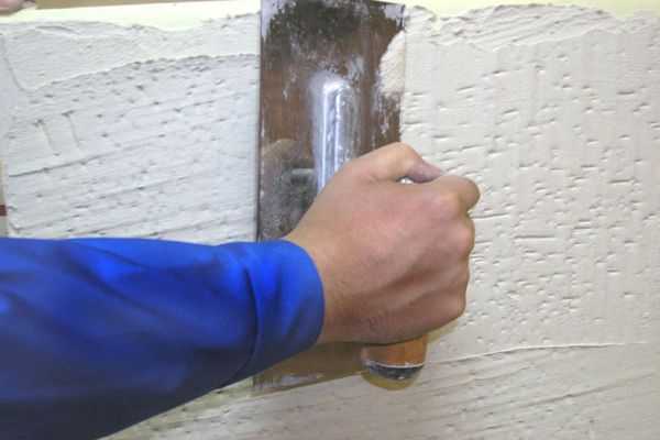 Раствор первого слоя набрасывают не толще 8 мм. По стене его распределяют теркой, не стараясь сильно разгладить. Улучшить сцепление штукатурных слоев поможет создание волнистых борозд глубиной 2 мм через каждые 40 мм.