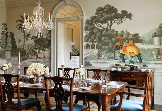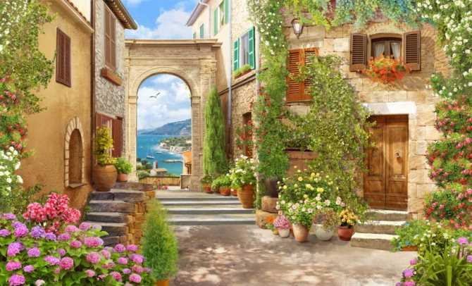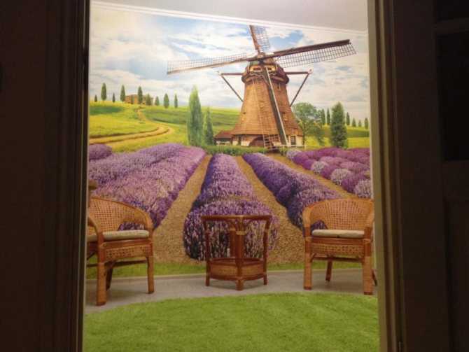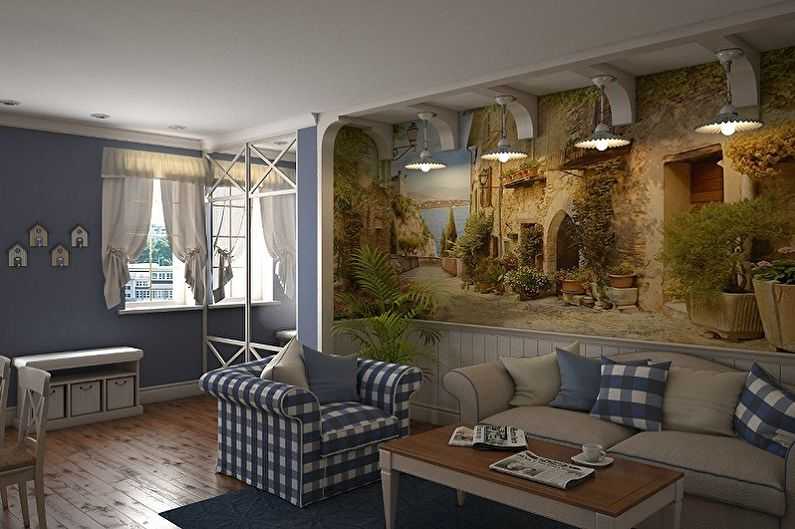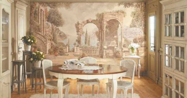 Нотки востока лучше всего подчеркнут традиционные пышные орнаменты, придающие утонченность и вкус, а также изображения сценок с флорой и фауной. Прованс, с его духом милой французской деревушки, дополнят холстовые фрески на стенах, изображающие все прелести загородных окрестностей – земляничные луга, лавандовые поля, травы. Изображения старинных улочек навеют дух романтизма.