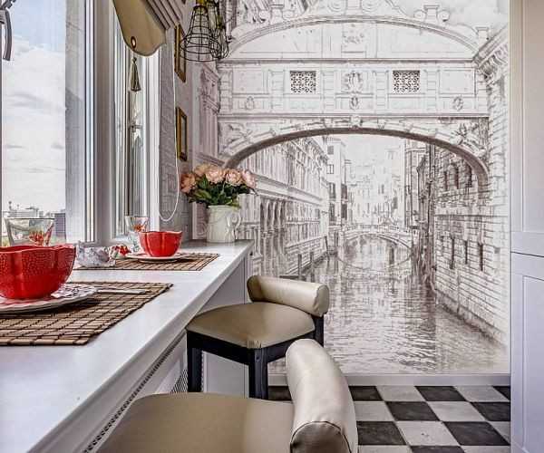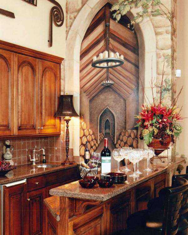 Помните, что фреска в маленькой кухне будет смотреться гармонично только тогда, когда является частью общего оформления: не выделяется яркостью и многообразием цвета, но в то ж время акцентирует внимание и является украшением интерьера